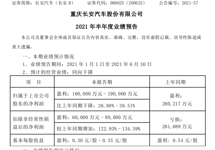 事实上,尽管长安汽车在今年上半年在销量超过了120万辆,实现了同比44.5%的增长,但是其业绩预告却显示,今年长安汽车归母净利润预计盈利16亿-19亿元,与去年同期的26.02亿元相比下降了26.98%-38.51%。这也意味着,长安汽车在销量利润上出现了倒挂现象。