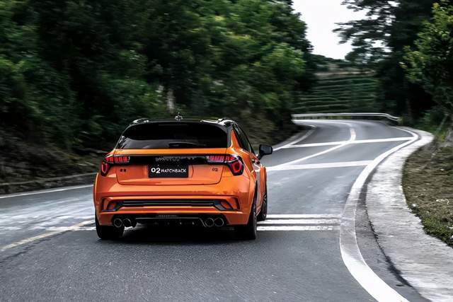 02与02HB(除黑色版本外)都采用了双色车身设计,不过普通02的配色大多以深色系为主,并且有与车身异色的防刮饰条,02HB的主打色则是更为醒目的橘黄色,翼子板上的防刮饰条也变为与车身同色的设计,结合较低的轮间距,营造出一种性能车宽体包围的质感!另外一个细节,普通02(2022款)全系标配了18寸轮毂(2020款有17寸轮毂版本),顶配车型同样选用了19寸轮毂,但是02HB的轮毂为强度更高的锻造轮毂,轮胎也是来自米其林的PS4高性能轮胎。