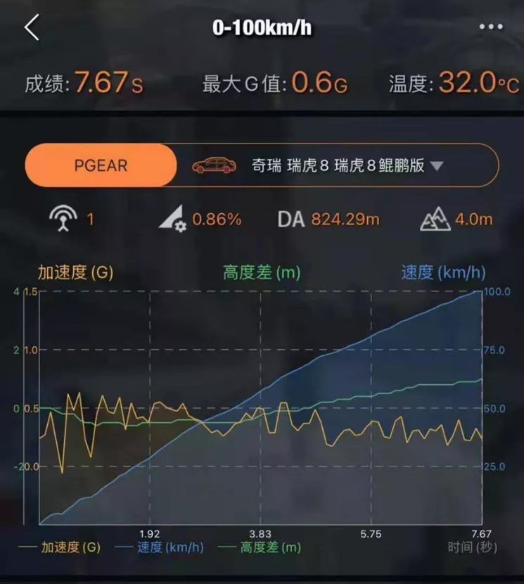 最终瑞虎8鲲鹏版的零百加速实测数据为7.67s,与官宣的7.5s,相差无几。考虑到高温因素,这点细微出入在情理之中。