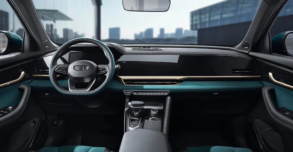 内饰采用简约设计风格,汲取东方古典雅韵的翠羽蓝与星越L完美融合,珠缝线的精细与麂皮的细腻相得益彰,2845mm超长轴距彰显旗舰的博大胸怀和格局。