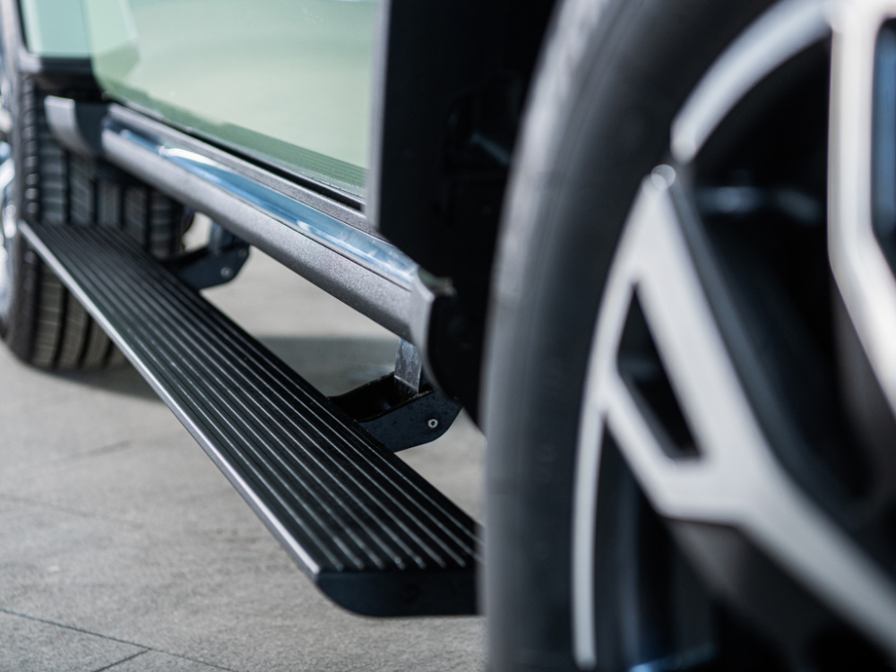 此外,新车还针对部分配置进行了调整,比如轮圈由越野专业的17英寸AT胎更换为了静谧性更好的18英寸米其林轮胎(我看型为17英寸),进而更适合城区内的消费者日常代步使用。值得一提的是,新车还在配置上增加了电动侧踏板,使得上下车更为容易。