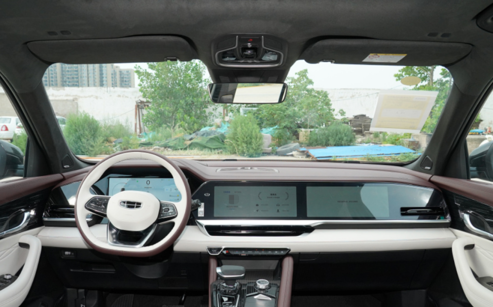 内饰依据豪华车型的标准设计,坐进驾驶舱可以被一股浓郁的豪华氛围所包围。车厢内大面积采用翻毛皮材质,无论是触感还是感官体验都是高级的。中控台上搭载的三块液晶显示屏又将这款车的科技感瞬间拉满,12.3英寸IMAX屏幕内置高通芯片,不仅操作速度流畅,可玩性也较强。