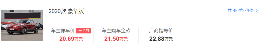 车系中比较推荐豪华版车型,就配置方面而言,C-HR EV全系车型配备了9英寸中控液晶显示屏、多功能方向盘、远程启动功能、电池预加热、自动驻车、上坡辅助、副驾驶座垫式气囊、前/后排头部气囊、膝部气囊、LED日间行车灯和自动头灯等丰富的配置。不过相对来说,售价为22.58万元的领先版配置车型没有配备全速自适应巡航、车道偏离预警系统、车道保持辅助系统、主动刹车、倒车影像以及自适应远近光灯等配置,不推荐购买。多花3000块钱,22.88万元的豪华版车型以上配置都有,性价比更高。根据汽车之家真实车主价格显示,目前终端有近2.2万元的优惠力度,如果您感兴趣的话不妨关注一下。