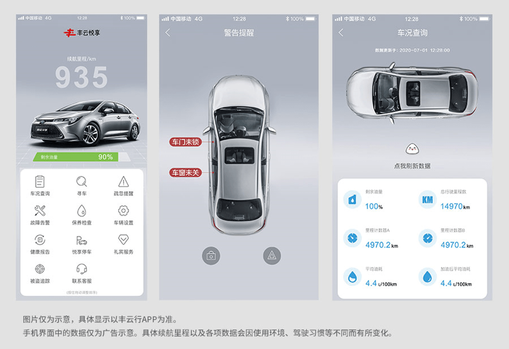 除了这些,丰云悦享作为广汽丰田开发的一套专属车机互联系统,让驾驶者还能够通过手机丰云行APP实时控制车辆,功能包括被盗追踪(远程启动限制)、疏忽提醒、远程故障诊断服务、保养提醒、紧急救援/道路救援和APP车况查询/远程控制等,让车主随时随地享受安全舒适的出行体验。