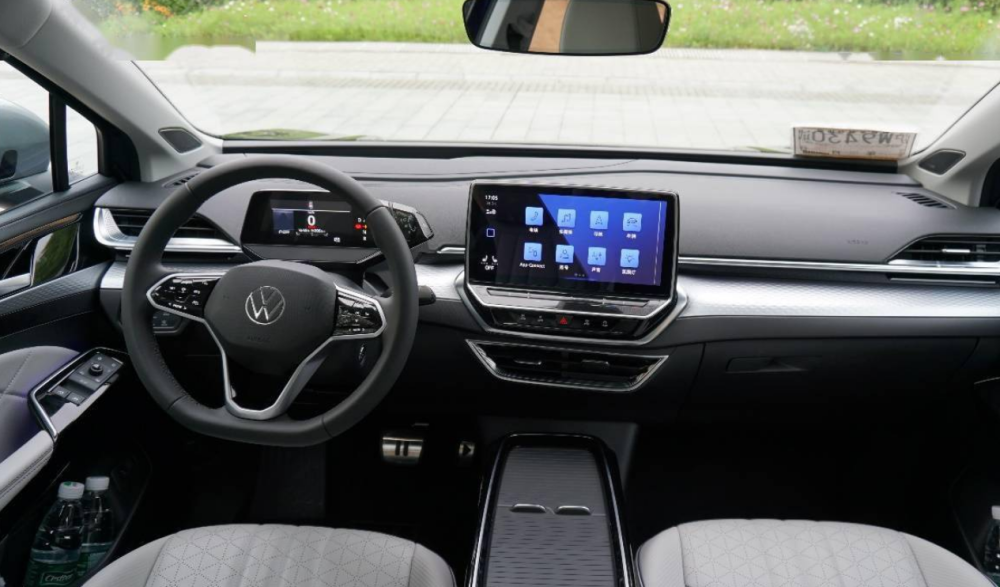 来到座舱内部,ID.4 X内饰设计简约科技,悬浮式中控大屏和小尺寸的全液晶仪表,能给人一种清爽的观感。