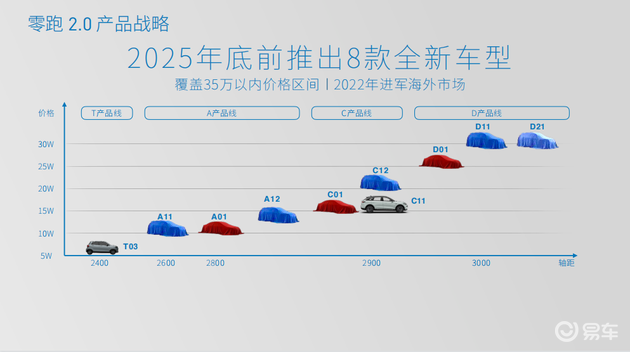 而从未来规划来说,截止到2025年初,除了现有的轿车和SUV产品外,零跑还将继续推出多款全新轿车和SUV车型,比如今年将推出的S01酷玩版、T03舒享版以及C11,明年将推出的C11四驱性能版、T03改款及C11增程版;2023年的C12纯电SUV,2023年的C02轿车,C13 SUV以及C21 MPV等,可以看出零跑的产品细分矩阵正在越来越完善。
