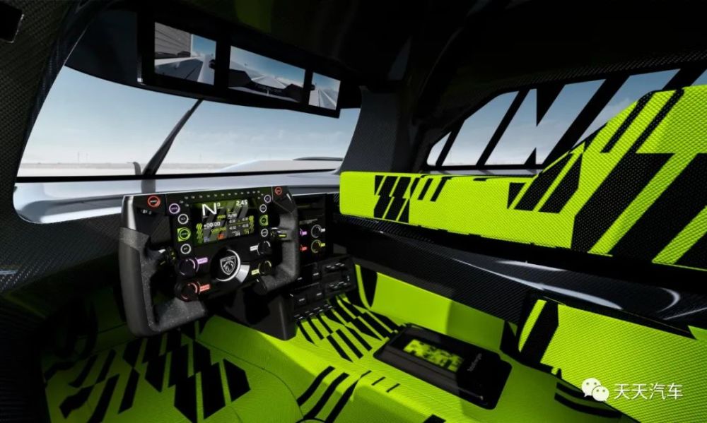 在车内,标致i-Cockpit数字化驾驶舱概念也得到了应用,不过LMH赛车使用的电子方向盘已经整合了液晶仪表盘。另外,车内配色也是PSE运动部门的专属荧光黄色,同时车厢内部的一些组件还使用了3D打印技术,便于材料回收。