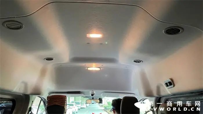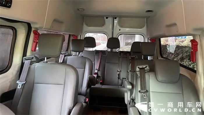 因为这辆福特新全顺商旅型是中顶中轴车型,所以乘客在长达5341mm的车内可以坐拥接近3米的纵向空间,而高达1735mm的车内顶高,也可满足一般乘客直立进入车内的诉求。据司机苏师傅的介绍,福特新全顺商旅型全皮包裹的座椅以及良好的整车NVH控制,是比较受用户认可的,而对于他们驾驶人员而言,长时间在车内工作,更需要一个相对舒适的环境,以缓解长时间驾车的疲劳。