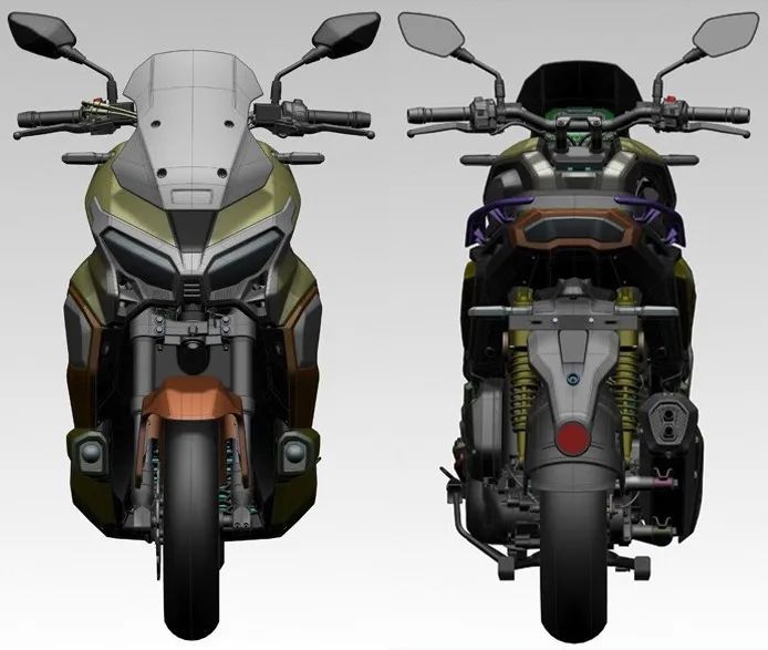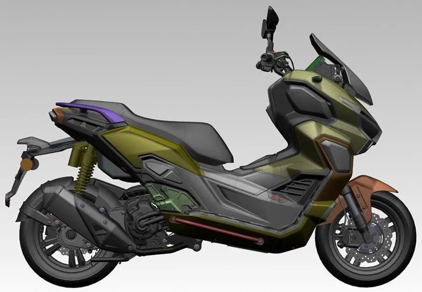 该设计图中的车辆看起来确实有一些本田跨界踏板的设计风格,加之本田刚注册通过ADV350名称,以至于会被猜测为是本田ADV350,但实际上并不是。