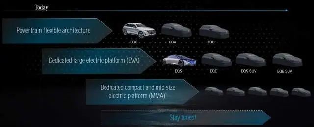 由于规划是从2025年开始面向2030年只卖纯电车型,所以奔驰这一次在前面两个平台的基础上,将推出三个EV专用的电气化平台EA,分别是: