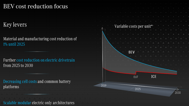 图8 奔驰对于纯电动成本的预估
