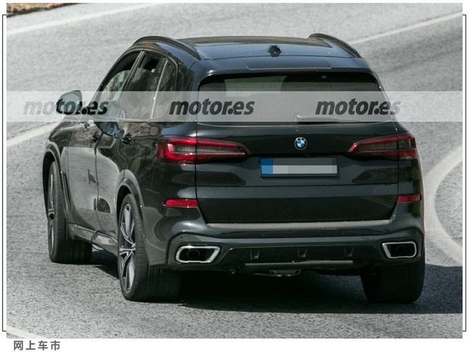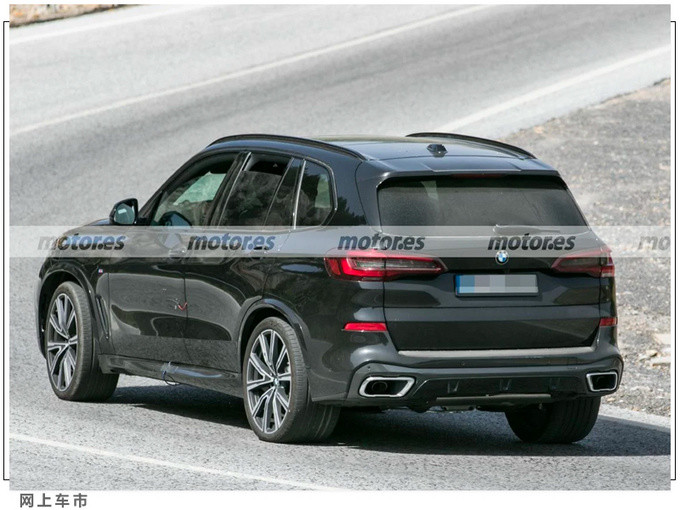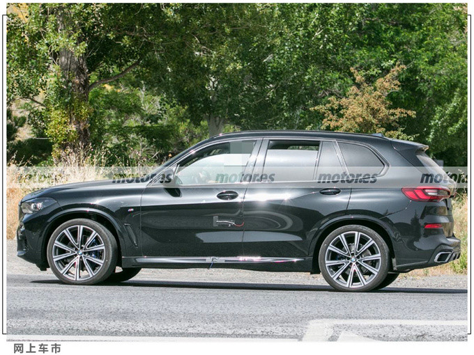 宝马中期改款X5前脸装配了经典的双肾进气格栅,量产版车型还将继续提供激光头灯组,雾灯组位于下方保险杠两侧。车身侧面装配了全新造型的双色铝合金轮毂,顶部还提供有金属行李架。车尾为双边单出式排气布局,尾灯组腔内造型也得到了升级优化。