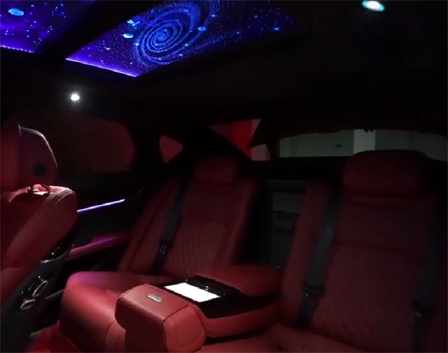 原来,这款比亚迪汉改装了可升降的尾翼 ,还配备BBS轮毂,拥有紫色的卡钳,车内还加装了“气旋”风格的星空顶,实在骚气啊。