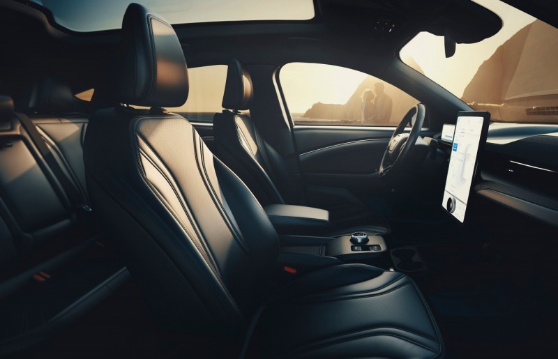 Mach-E的车身尺寸为4739/1881/1613mm,轴距为2984mm,长轴距为车内空间尤其是后排空间提供非常好的保障。