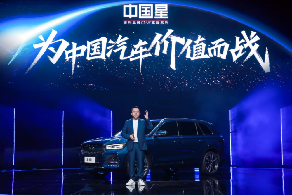 凎家阅,吉利汽车新任CEO、80后内生型干将,自我定位为以“为用户服务的阿甘”,发布会上,其讲话的核心主旨被浓缩成了其身后巨大屏幕上的一页PPT——为中国汽车价值而战!