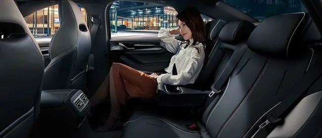 内饰部分,给我第一感觉就是大,2718mm的轴距让车内有了实实在在驾乘空间,前排调整好位置后,后排仍旧有不错的腿部空间,再加上没有地台的平整设计,让后排的乘坐更舒适。