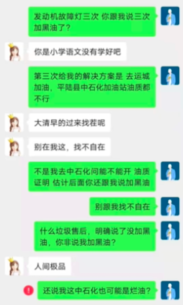段先生告诉小编:当时车辆维修完毕后,自己在微信中发现售后接待在朋友圈中发了一则辱骂自己的文字,该销售对段先生辱骂以及人身攻击。随后段先生微信找上该售后,询问为何对自己出言辱骂,但却遭到对方删除好友。