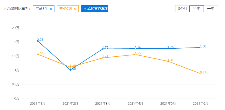 C级之所以在换代末期都还能卖那么好,更多的是因为奔驰给它近10万的市场优惠(部分地区优惠后售21.25-37.95万),在同级豪车里堪称最给力优惠。不过比较尴尬的是,优惠巨大的奔驰C级,依旧卖不赢宝马3系。