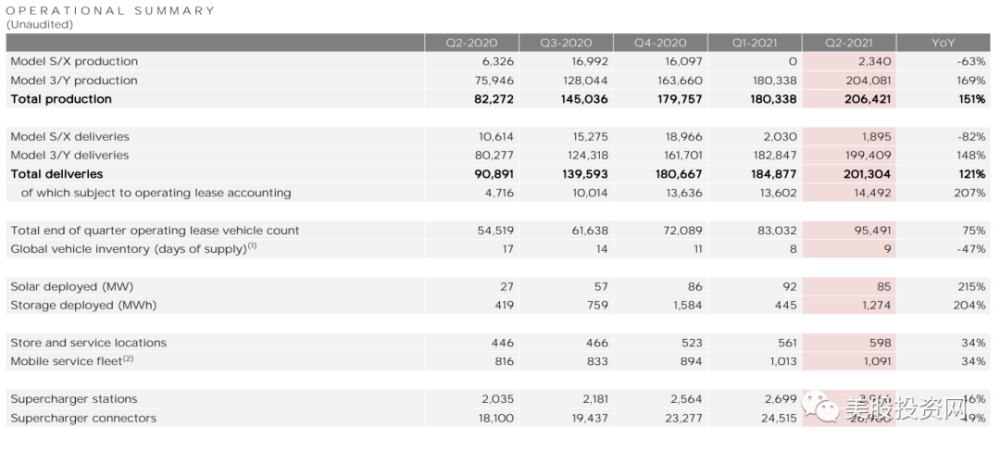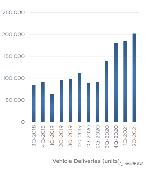 特斯拉预计,今年汽车交付量将增长超过50%。在截至6月30日的季度,特斯拉已经报告了201,250 辆电动汽车的交付量(同比增长121%)和206,421辆汽车的总产量(同比增长151%)。