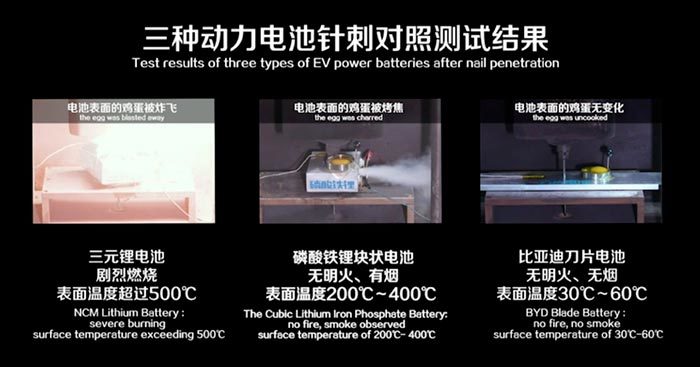 根据官方介绍。刀片电池因其特殊的结构不仅显著提升了能量密度,每块电芯还可以变成结构件,成为支撑电池包的横梁,有效抵御碰撞发生时对电池的冲击。比亚迪官方还多次进行针刺实验,结果显示单体刀片电池在被针刺之后,无明火也无冒烟。