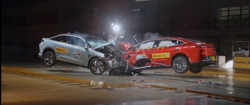 再次复盘整个碰撞和着火情境来看,这家汽车媒体选用的是2020款比亚迪汉EV超长续航版豪华车型与2021款Arcfox极狐阿尔法S 252S车型采用64km/h高速50%重叠碰撞的方式,完成了双车碰撞测试。