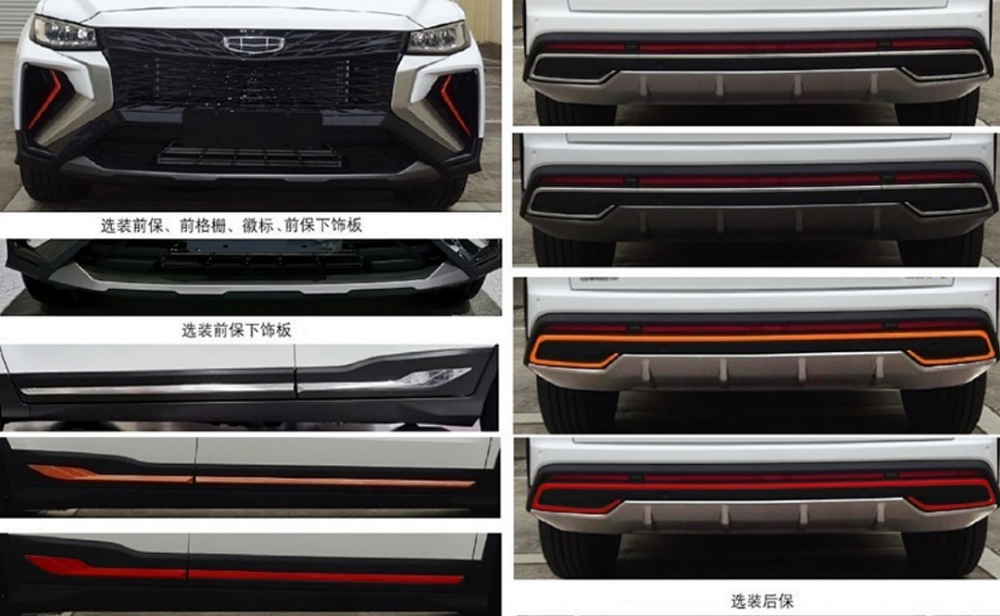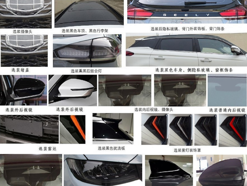 从申报图片可以看出整个前脸完全变了样子,按理说吉利汽车很早就形成了自己的宇宙回声水波纹进气中网样式,但是近两年的部分新车型开始抛弃水波纹前脸,这款车更是有点像学习长安CS75plus,远看车头前脸与雷克萨斯也有一些类似之处,夸张的进气中网搭配X造型镀铬装饰面板,车头两侧拥有LED矩阵大灯,如果不是中间悬挂着吉利车标,恐怕没有人会以为这是一台吉利博越的衍生产品。