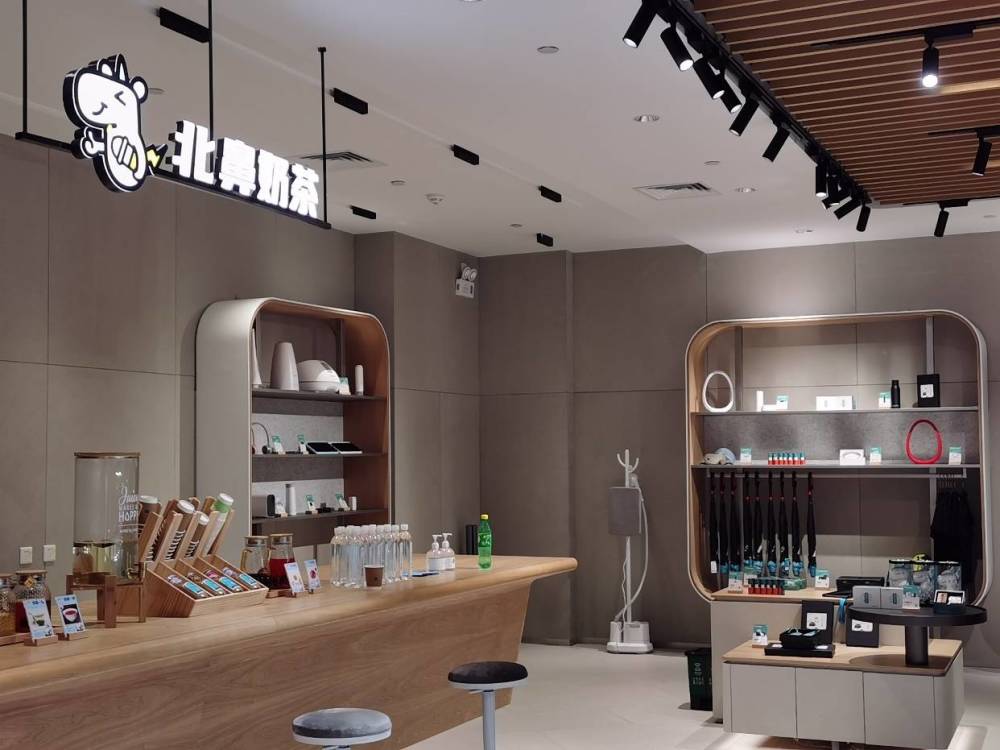 在“4A级网红商圈潮玩空间”里,我们可以花费积分品尝到网上很火的“北鼻奶茶”,还能线下兑换埃安系列精品周边,此外在这里还能玩智能座舱游戏和K歌。