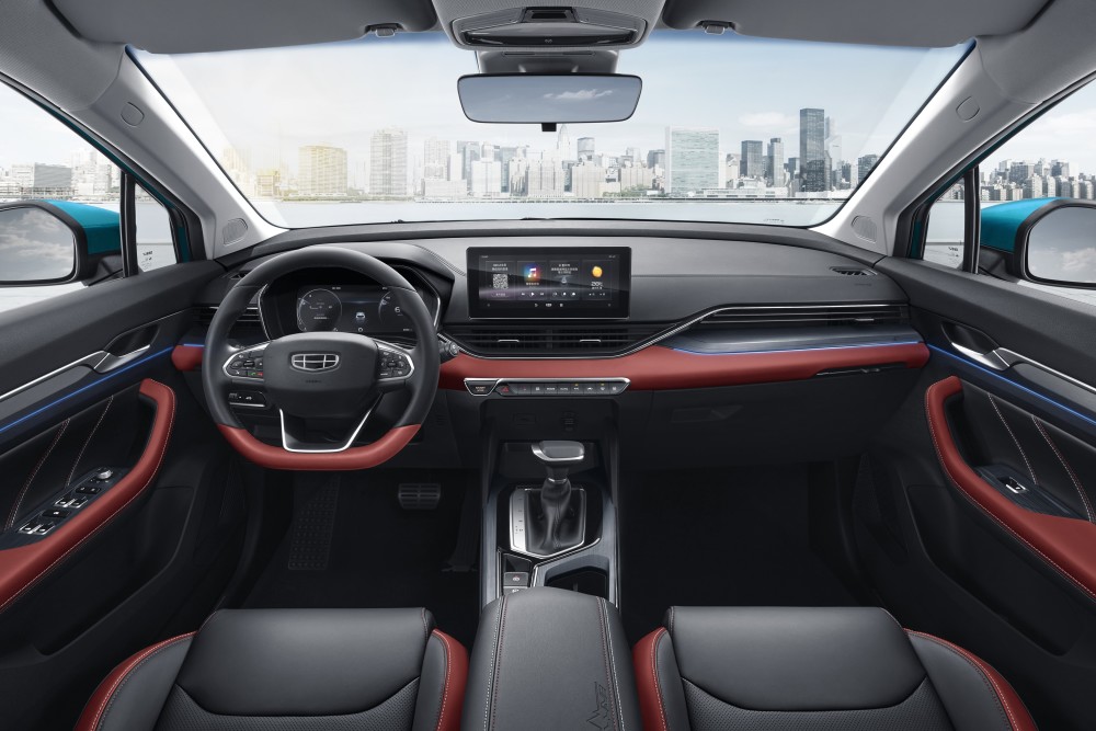 内饰方面,图片中的新车采用了红黑配色的设计,更显运动。中间配有10.25英寸的悬浮式中控触摸屏,在保证科技感的同时增加便利性。在配置方面,新车在智能化上也有着升级,搭载吉利首发的草莓音乐智能交互系统、OTA升级、540°透明底盘、律动流光氛围灯等。同时还配备GKUI吉客智能生态系统、手机APP智能远程控制、手机蓝牙钥匙等功能,便利性得到大大提升。