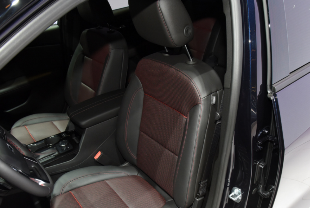 为了给用户打造一个温馨、舒适的用车环境,开拓者这款车的座椅还采用真皮面料和仿皮面料拼接,中配以上的车型座椅采用运动式设计,座椅上加入造型精致的双排缝线,无论是品质还是档次都能体现出来。中控台上搭载的10英寸触控显示屏只能在中配以上的车型上见到,搭配中控台上设计的圆形空调通风口,使得车厢内部的环境变得不再单调。