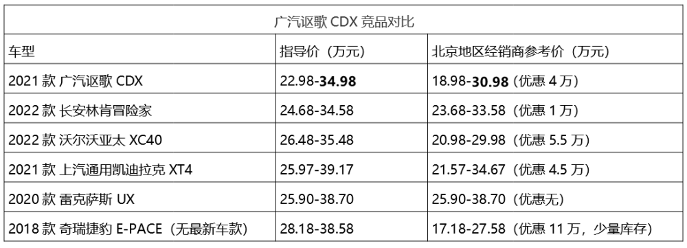 CDX所在的紧凑级SUV细分市场,豪华品牌竞品在终端优惠力度普通较大,部分品牌虽然指导价高于CDX,不过在终端价格放水后,对消费者来说明显更有吸引力。