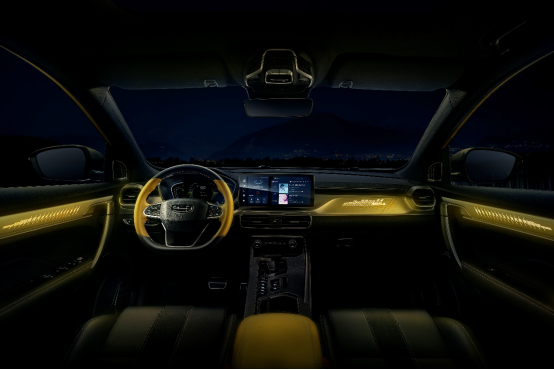 中央配备一块12.3英寸高清触控大屏,并新增的72色律动氛围灯,具有呼吸模式、随驾驶模式联动、随车速律动、音乐律动等多种光效,科技感满满。