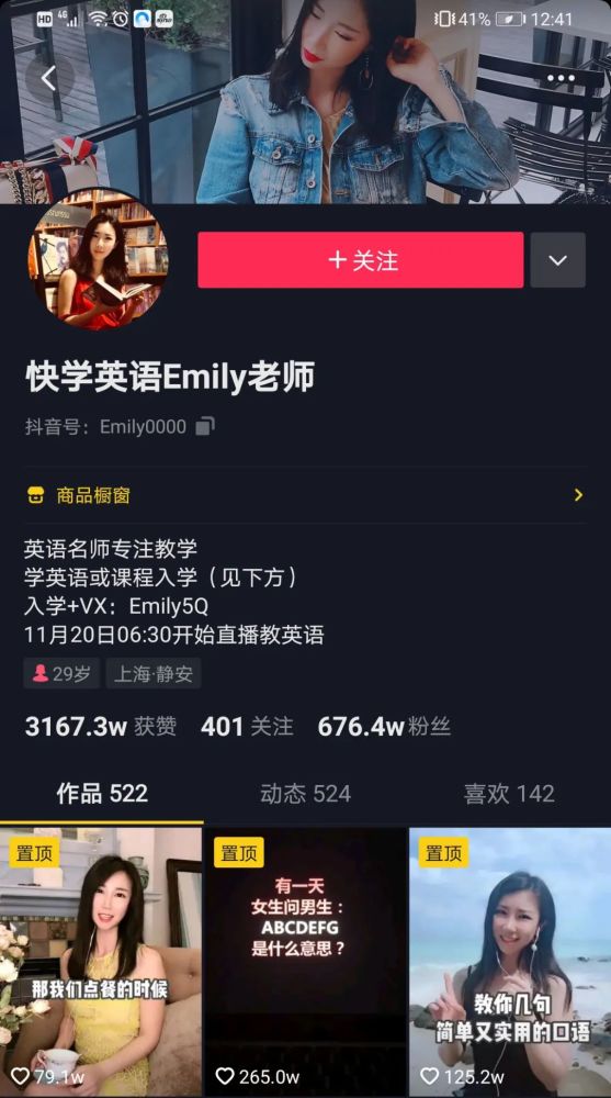 账号名字“快学英语EMILY”的“快”