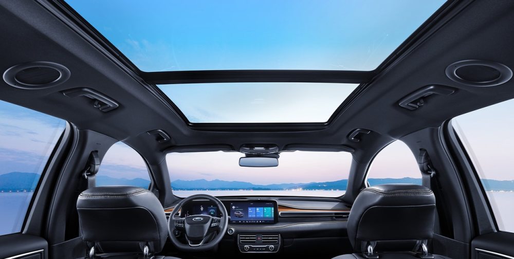 来到车身内部,全尺寸天窗的视觉感受十分震撼。8英寸数字仪表盘与13.2英寸中控屏形成双联屏的布局,更符合当下消费者对智能化内部空间的要求。