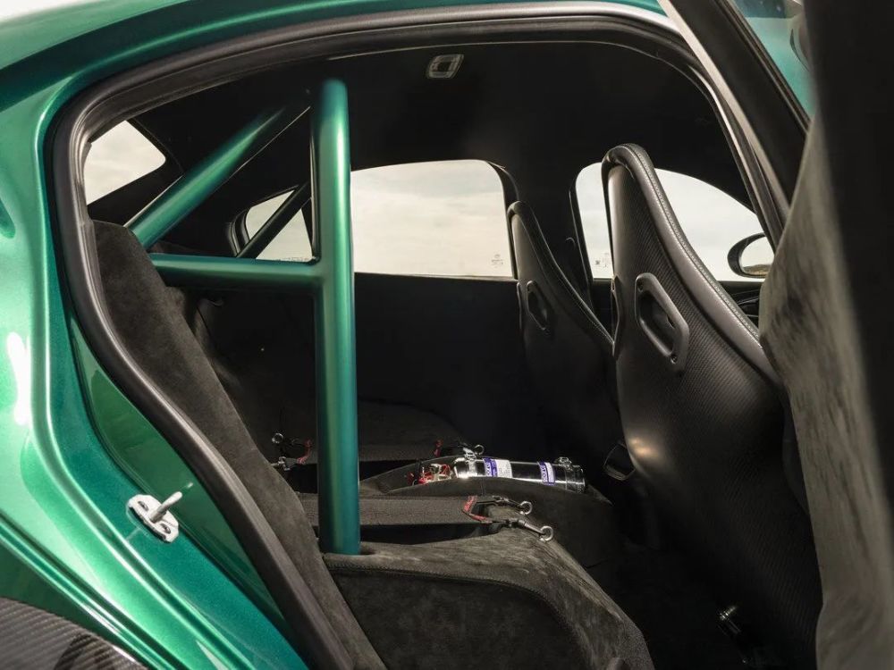 既然是竞技、赛道化,那赛车桶椅肯定是必备的装备,可惜的是由于国内的法规的问题,取消掉了四点式安全带,但你可以通过后期改装,配备回来。值得一提的是,为达到极致的轻量化,前车门的拉手,均换装成编织带式。