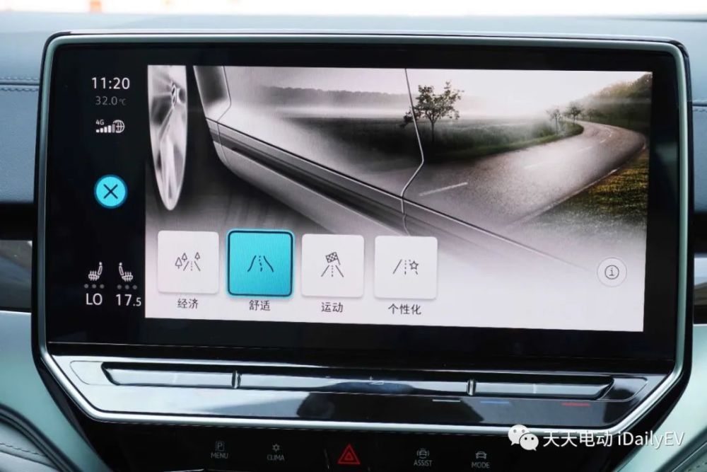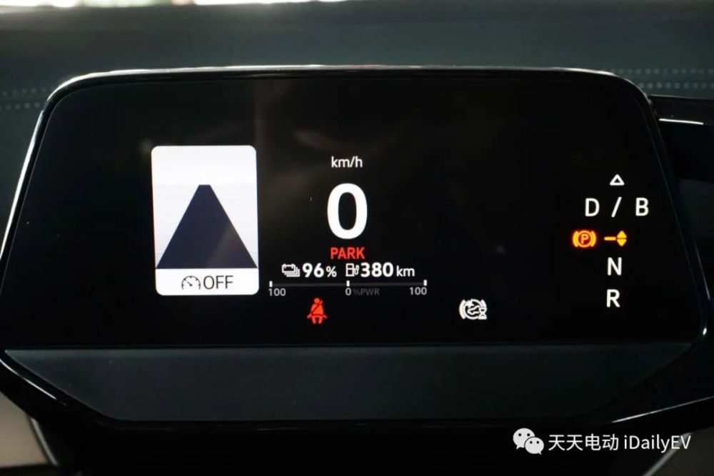 不像其他的电动车,大众只为这款车提供了一个动能回收力度,选择B挡后车辆就会开启,在高速行驶时,松开电门踏板后能量回收的介入并不突兀,不会让人产生不适感,这里也能看出大众在调校上的细腻。