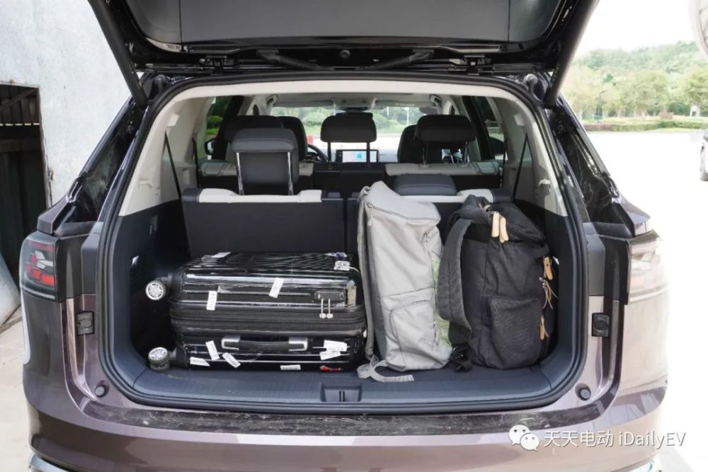 ID.6 CROZZ的后备厢空间表现还是不错的。在第三排座椅不放倒的情况下,放下两个行李厢没问题。