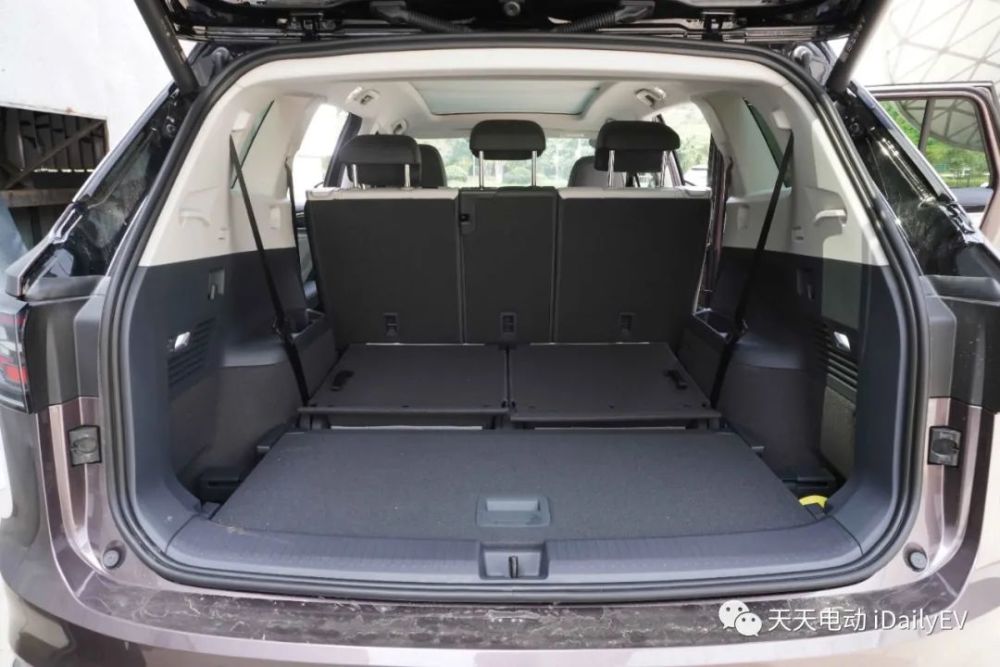 虽然有第三排是这款车的最大亮点,但就实际体验来讲,由于该车的五连杆独立悬架和电机占用了一部分车尾空间,且7座版后排进出不算方便,并不适合成年人乘坐。
