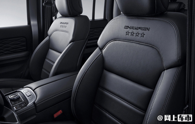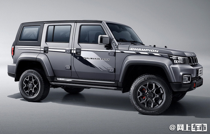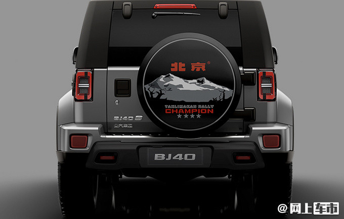 新款BJ40环塔冠军版外观造型与现款车型保持一致,选用17英寸熏黑轮毂+红色卡钳,并搭配AT轮胎,顶棚依旧可以拆卸,此外新车还增加了一款暴风灰车身颜色。内饰方面,BJ40环塔冠军版布局保持不变,副驾把手、座椅都带有“CHAMPION”标识和四星图案,其中副驾把手还加入了环塔专属氛围灯。