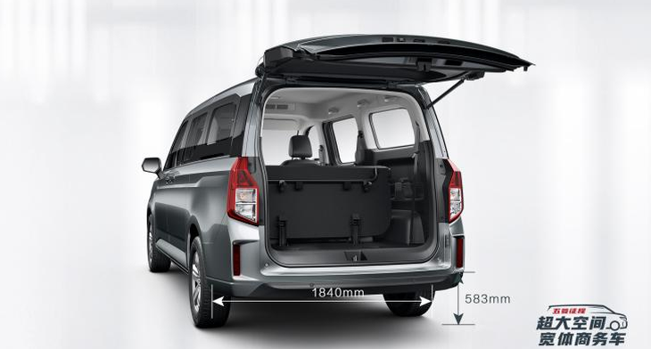 车身尺寸上,新车长宽高分别为5150/1840/1895mm,轴距3180mm。在内部,新车还提供7座、8座以及9座的多种座椅布局。另外,新车还有2座的封闭式版本,货箱载货面积达3.87㎡,货箱容积达4882L,整体车内空间超5000L。