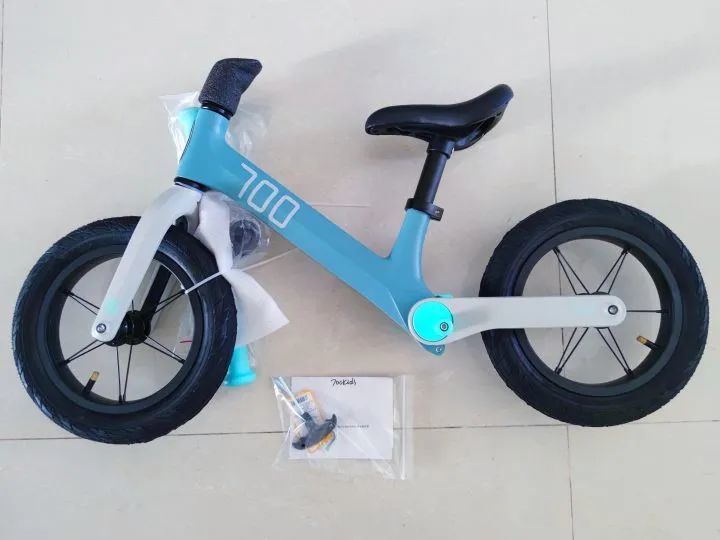 车架采用镁合金一体成型的无焊接高强度镁合金材质,不仅密度高,更耐冲击,保证安全稳定的同时也为车身轻量化打下基础,对比了下我的老款,几乎是差不多的重量,小孩子自己扛毫无问题。不管是哪一代,柒小佰都很注重儿童安全,全车找不到一个锋利的棱角,非常贴心。