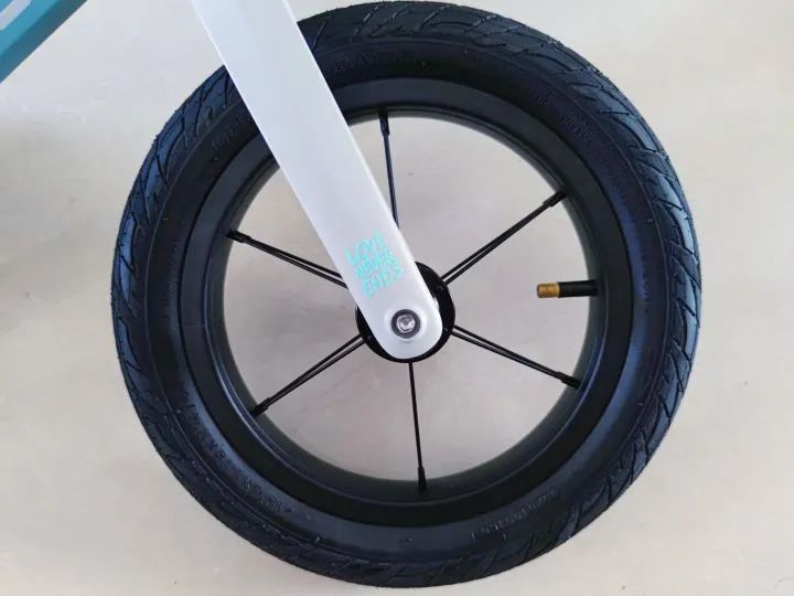 车轮采用六辐星芒轮组,看着很简单舒适也很漂亮。加宽的竞技充气胎和专业九级的进口培林轴承可以让滑行更顺畅省力,转速更持久,可以实现高配速并且偏摆幅度小。一般专业比赛用的都是充气胎。不过在充气的过程中遇到点麻烦,因为车轮圈小,打气筒的也得选好合适的。