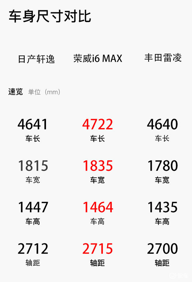 车身尺寸对比