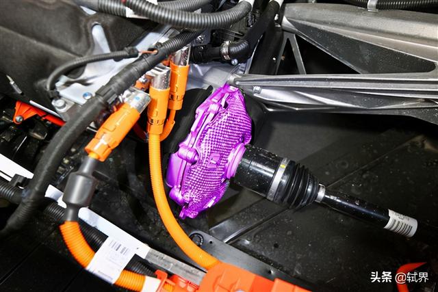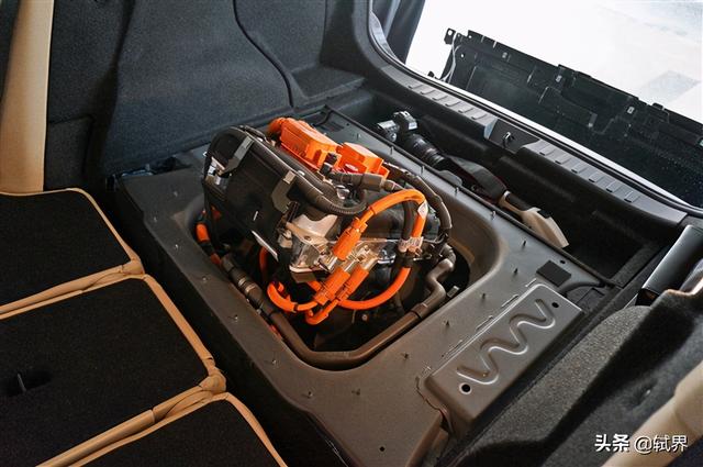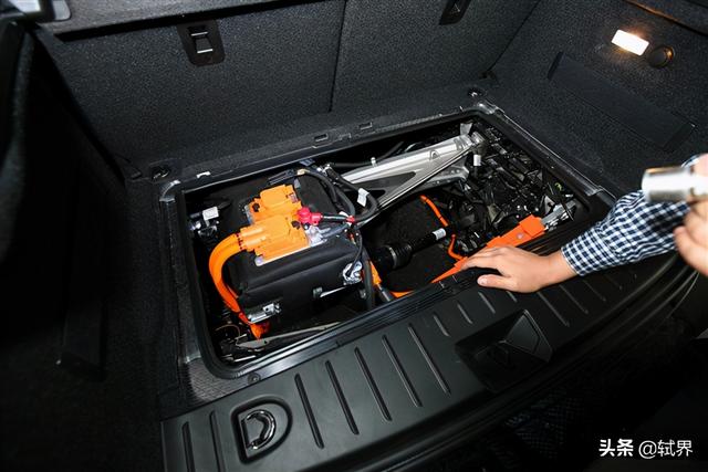大家都知道高压电也是存在辐射的,对人体有一定程度的危害,所以宝马把高压电线密集的这部分系统都放在了车尾,最大程度的远离驾驶员,提高安全保障。你看,整个高压部分还用黑色“防辐射外衣”包裹着。