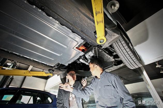 首先我们先把这辆纯电动i3(非增程型)举升起来,拆掉底盘护板,开始今天的工作。