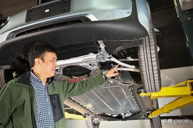 大师:我们来看看底盘结构就明白为什么i3会具有家族传统的操控感了。首先来看看前悬挂,这根很细的V字形前叉臂跟别的宝马车不一样,是特意为i3开发的,很细、很轻。但从整体结构上讲,它还是改良的麦弗逊结构,与其它宝马车型没有什么差异。宝马的这种技术非常成熟,沿用了多年,老款和新款宝马3系上,也没有什么质的改变。