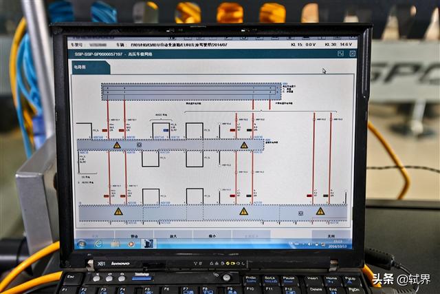 大师:我们再连接电脑看看这台车的电路图。从图中可以看到这辆中规的i3不带快速充电功能,电路里少了快速充电的接口和相应的线路。这款车要是能够快速充电,续航里程也就不是什么太大的问题了。