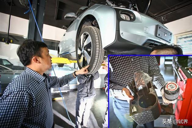 大师:第一,这款车没有备胎,用的是气泵和补胎液。这个气泵里是高压气体和胶的混合体,通过充气口高压打入漏气的轮胎,在压力的作用下高压气体和胶会从漏气孔向外喷,逐渐的胶就把漏气孔给堵住了。但是这样的后果是面前把车开到维修店,到了店里之后这条轮胎就彻底废掉不能用啦。