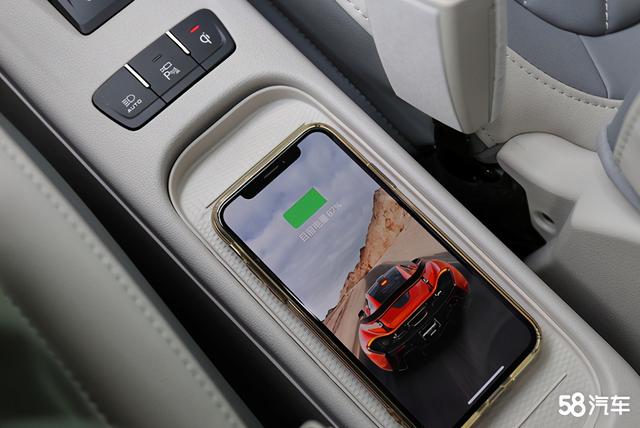 无线充电也是一大亮点,省去了复杂的线束。不过这个无线充电板手机放上后,要点击一下上方的第三个按钮。