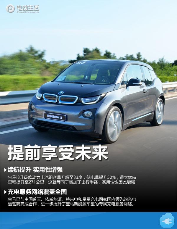 2016年夏季,宝马i3升级版车型推出,通过提高锂离子蓄电池的能量密度,使得动力电池组容量升级至33度,储电量提升50%,最大续航里程提升至271公里,这就等同于增加了出行半径,实用性也因此成正比增长。
