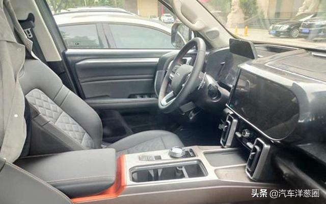 内饰方面,根据此前的谍照来看,新车有着部分路虎的风格,不少设备采用方圆造型设计,呈现比较硬朗的风格,配备了全液晶仪表和大尺寸中控屏,回形空调出风口和橙色点缀看起来很别致,菱形格座椅提升了质感。